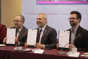 Morelia, Michoacán, 13 de enero de 2024.- El Gobierno de Michoacán puso a disposición 2 millones de metros cuadrados para la construcción de 44 mil viviendas sociales en el estado, proyectadas durante el sexenio de la presidenta Claudia Sheinbaum Pardo, así lo señaló el gobernador Alfredo Ramírez Bedolla al firmar el convenio del Programa de Vivienda para el Bienestar, con la Secretaría de Desarrollo Agrario, Territorial y Urbano (Sedatu).