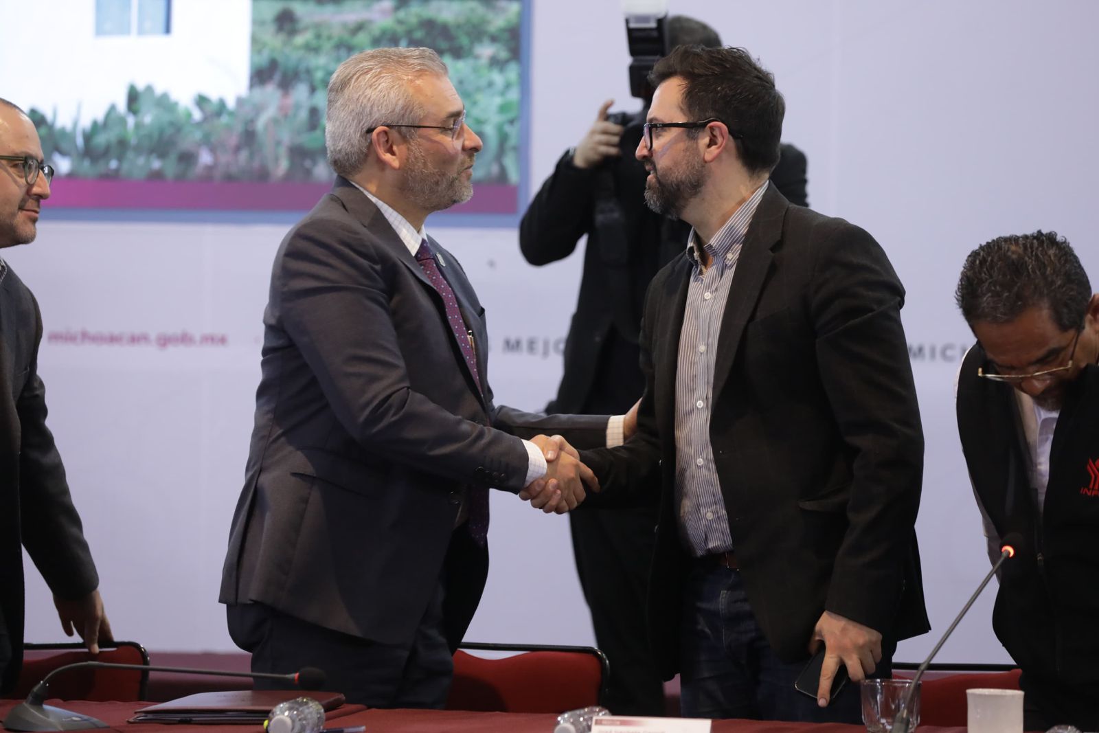 Asistieron al evento, el director general del Instituto Nacional del Suelo Sustentable, José Alfonso Iracheta Carroll; el director general de la Comisión Nacional de Vivienda, Rodrigo Chávez Contreras; titulares de las secretarías estatales del Bienestar, Finanzas y Administración, Comunicaciones y Obras Públicas; así como delegados de la Conagua y Bienestar en Michoacán.