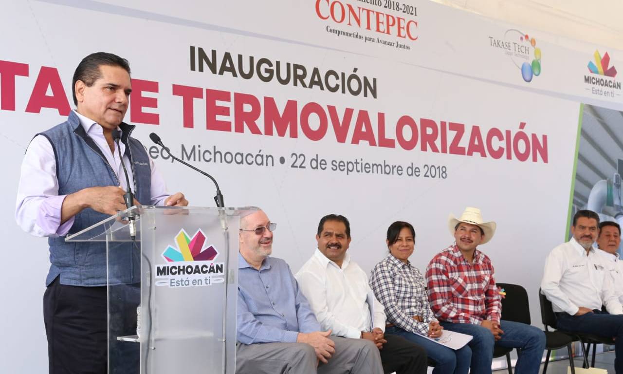Contepec, Michoacán, a 22 de septiembre de 2018.- Como parte de la política de medio ambiente del Gobierno Estatal y la sinergia con inversionistas extranjeros, Michoacán es hoy pionero a nivel nacional y del continente americano, en instalar la primera planta de termovalorización de Takase Tech, que aplica tecnología japonesa para transformar la basura y generar biofertilizante y combustible.