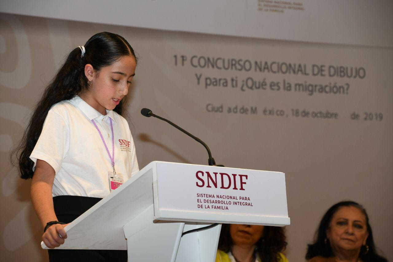 En la ceremonia realizada en el Museo del Palacio de Bellas Artes, la pequeña fue reconocida por su talento y reflexiva aportación a este tema enfocado al fenómeno de la migración, en el que tomaron parte 6 mil 503 niñas, niños y adolescentes de 26 estados del país.