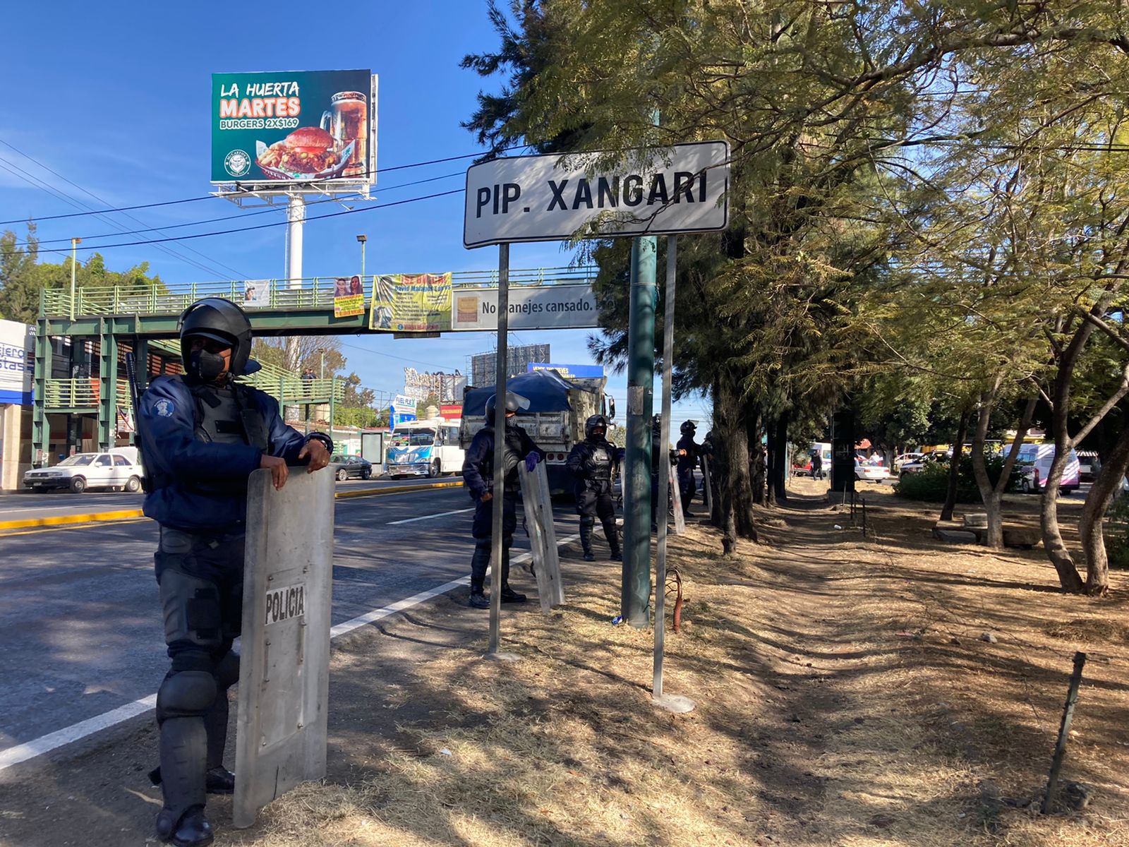 Varios elementos de la Unidad de Restablecimiento del Orden Público (UROP) fueron desplegados a la altura de Xangari, sobre la Calzada La Huerta.