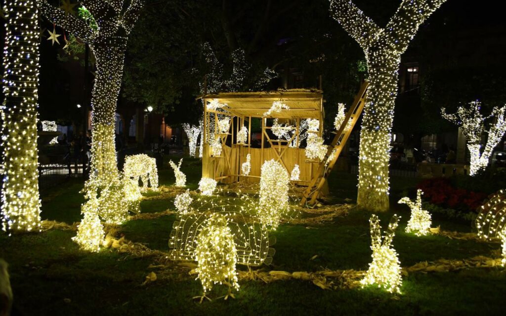 En la Plaza de Armas realizaron un recorrido por el nacimiento y disfrutaron de la ornamentación de 47 árboles con luces navideñas y la ambientación con animales alumbrados con led; asimismo apreciaron la decoración del Kiosko con nochebuenas y estrellas de chuspata en árboles.