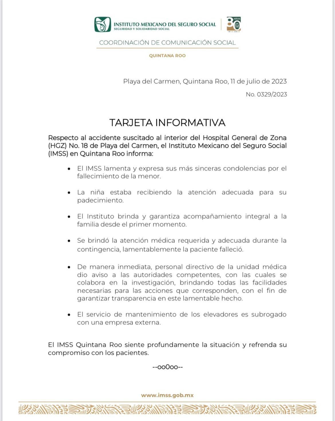 El hecho sucedió en el hospital numero 18 del IMSS en Villamar 2 en Playa del Carmen, Quintana Roo y por medio de un comunicado el Seguro Social se ha pronunciado diciendo que lamenta el fallecimiento de Betzabé Domínguez, señalan que se le brindo atención adecuada y requerida durante la contingencia, pero que lamentablemente la paciente falleció.