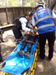 Paramédicos llegaron al lugar para atender a la lesionada que fue rescatada y canalizada a un hospital para su atención médica.