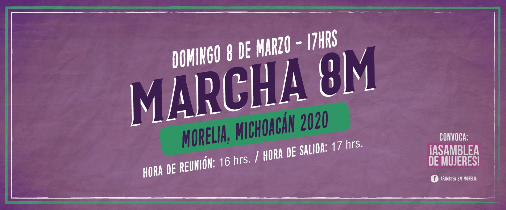El centro histórico de la ciudad de Morelia será el lugar donde se llevará a cabo la Marcha 8M. La cita es este próximo domingo 08 de marzo del 2020, para toda aquella mujer que quiera participar podrá hacerlo y estar presente en la Calzada Fray Antonio de San Miguel en punto de las 17:00 horas.
