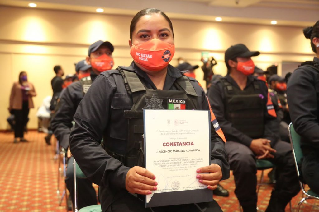 Durante el evento también se hizo la entrega de las constancias al grupo de Alerta de Género por su participación en la capacitación nacional sobre el Protocolo Nacional de Actuación Policial para la Atención de la Violencia de Género contra las Mujeres en el Ámbito Familiar, preparación que les permitirá fortalecer leo desempeño de sus funciones en beneficio de la ciudadanía.