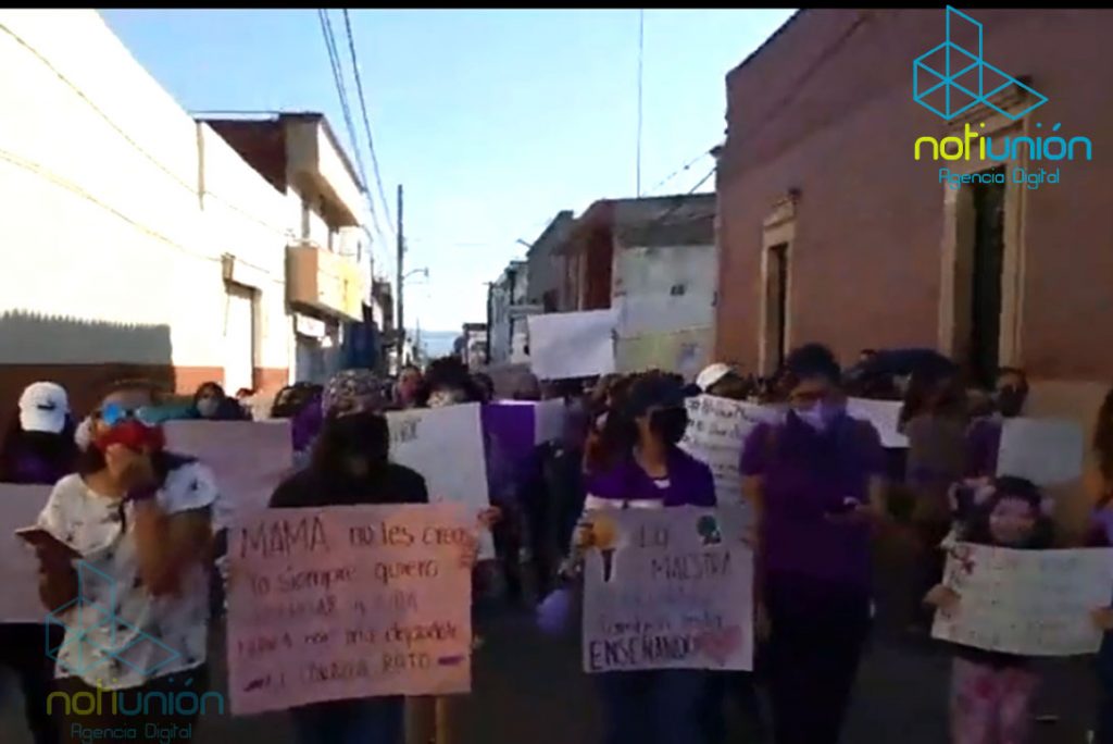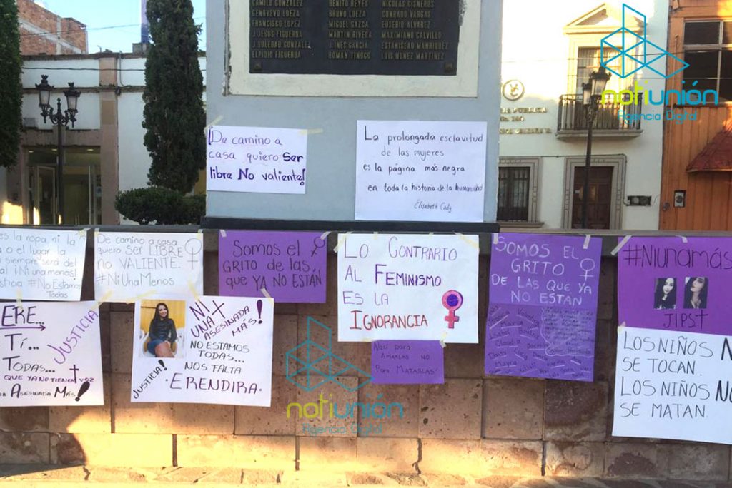 Las féminas arribaron a la plaza principal del citado municipio frente a Palacio Municipal, donde colocaron carteles y dispusieron a gritar consignas como «Ni una más», «Justicia para todas», entre otras.