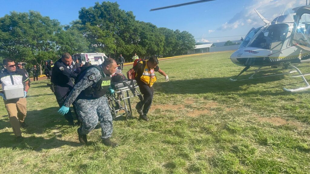 Policía Morelia solicitarón ayuda con un helicóptero de Protección Civil, para llevar al hospital al paciente y brindarle una atencion rápida, el cual recibió amputación de sus brazos.