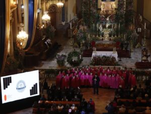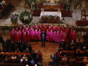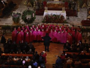 El coro, perteneciente al Conservatorio de las Rosas, ofreció una presentación emotiva que combinó piezas clásicas y repertorio sacro, acompañados por el imponente sonido del órgano histórico del recinto. La armonía entre la acústica del templo y la precisión vocal del coro generó momentos de profunda conexión espiritual y artística para los asistentes.