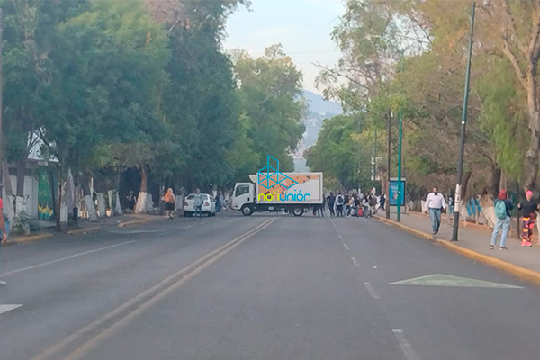 MORELIA MICH., a 30 de mayo del 2022.- Esta mañana de lunes un grupo de normalistas y egresados, bloquearon la circulación vehicular sobre la avenida Ventura Puente, frente a las oficinas de la secretaría de Finanzas.