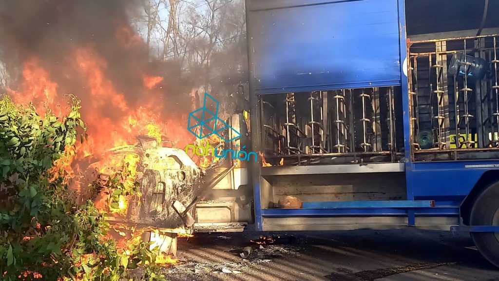 En un primer momento se alertó a las autoridades sobre la quema de un camión de la empresa Pepsi, sin embargo minutos después los jóvenes normalistas arribaron con un segundo camión de la empresa Aga para de igual forma prenderlo en llamas.