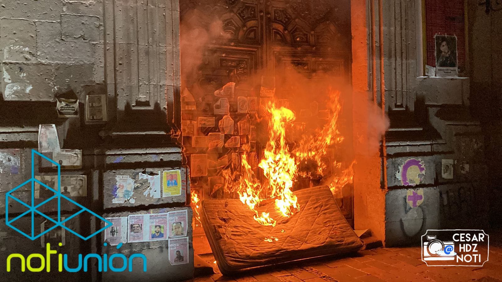 Antes de dispersarse, le prendieron fuego a un un colchón, arrojándolo a las puertas de madera de Palacio de Gobierno para tratar de incendiarlas.