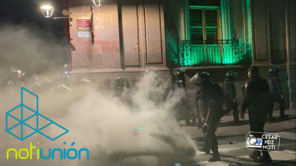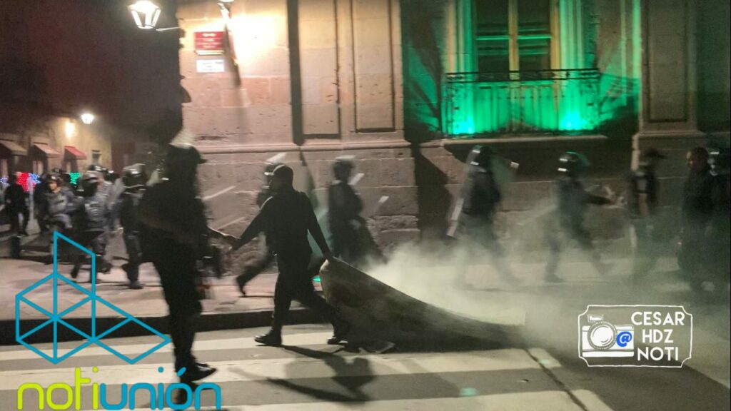 Ante esta situación, el grupo antimotín que esperaba en las inmediaciones de Palacio de Gobierno, actuaron para alejar a los manifestantes y retirar el colchón semicalcinado.