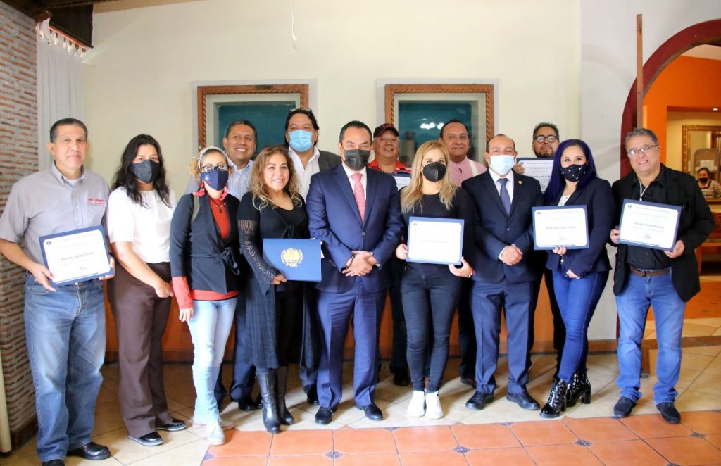 Uruapan, Michoacán, 22 de octubre e 2021.- Tras reconocer el interés que han mantenido las y los periodistas de Michoacán para capacitarse y actualizase, el Fiscal General del Estado, Adrián López Solís, entregó constancias de participación a periodistas de esta región que participaron en el seminario, Los Medios de Comunicación en Torno al Sistema Penal Acusatorio.