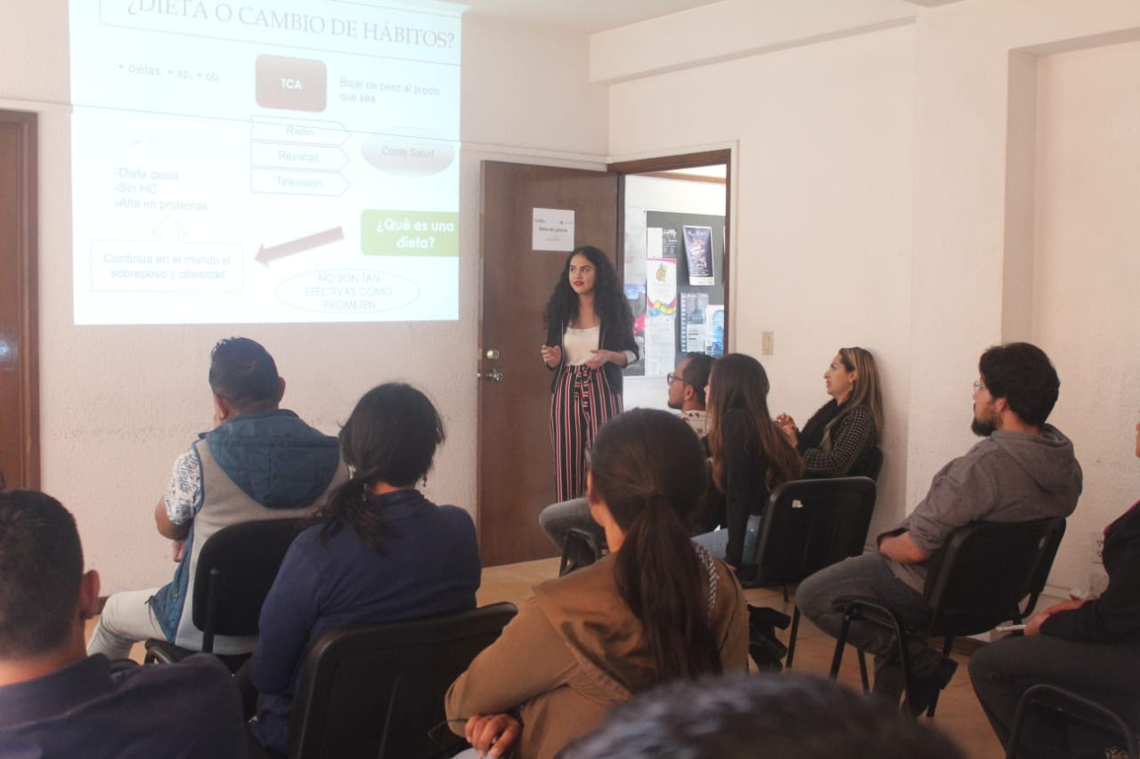 La encargada de ofrecer la charla fue la Licenciada en Nutrición, Patricia Celiz Cortés, quien explicó que estas acciones buscan que los jóvenes incluyan en sus días mejores hábitos de alimentación para lograr una vida más saludable.