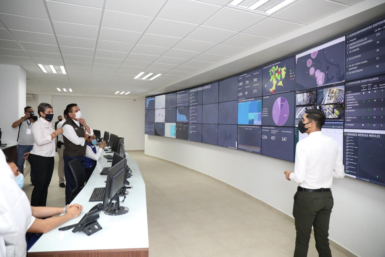 El Centro de Inteligencia en Salud cuenta con espacios de calidad para el trabajo diario y un Centro de Comunicación de última tecnología donde podrán monitorear en tiempo real la condición de las farmacias de los Centros de Salud, el comportamiento nacional y estatal de los casos de COVID-19, la capacidad de atención por municipio, la condición de salud de cada paciente con este padecimiento y el comportamiento de las unidades móviles instaladas para las pruebas de Coronavirus.