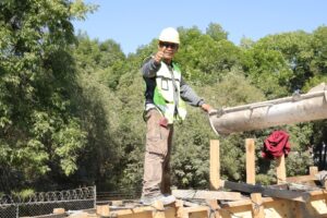 Refirió que ya fue concluida la colocación de las 36 trabes metálicas y se avanza de manera firme con una fuerza laboral de 160 trabajadores quienes operan prácticamente las 24 horas del día.