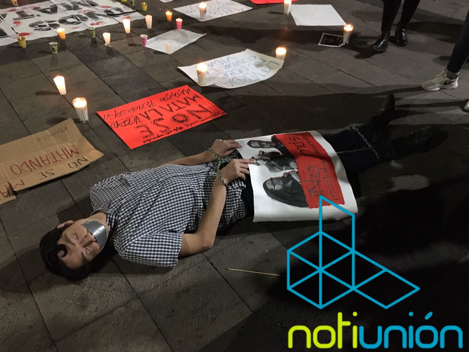 Con cartulinas y veladoras los periodistas pidieron respeto a su profesión, así como garantías para desempeñarse de forma segura mientras realizan su trabajo; con el puño alzado y alzando la voz con con consignas como #NoSeMataLaVerdad, #PeriodismoEnRiesgo, #NiSiliencioNiOlvido, fue como pidieron justicia por los compañeros caídos.