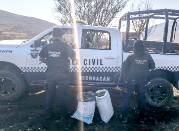 TANGAMANDAPIO, MICH., a 12 de Abril.- Elementos de la Guardia Civil de Michoacán en este municipio aseguraron dos costales de yute que estaban dentro de un cuarto abandonado.