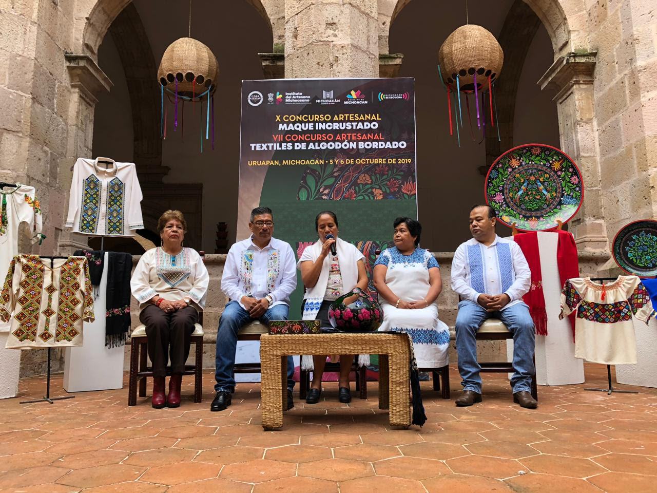 La directora general del Instituto del Artesano Michoacano (IAM), María Emilia Reyes Oseguera, señaló que en coordinación con el Fondo Nacional para el Fomento de las Artesanías (Fonart), y el ayuntamiento de Uruapan, realizarán el X Concurso Artesanal de Maque Incrustado y el VII Concurso Artesanal de Textil Bordado, en el que cada artífice podrá participar con dos piezas como máximo y entregarán 29 premios por un monto total de 120 mil pesos.