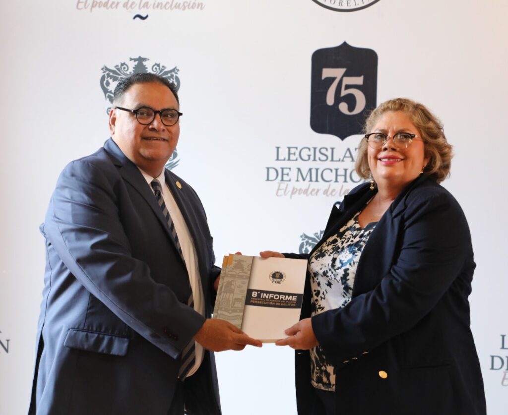 Morelia, Michoacán, a 28 de agosto de 2023.- En cumplimiento a la Ley Orgánica de la Fiscalía General del Estado de Michoacán (FGE), el Fiscal General, Adrián López Solís, hizo entrega del 8º Informe Semestral de Avances del Plan de Persecución de Delitos (PPD), al Congreso del Estado de Michoacán, al Gobernador del Estado, Alfredo Ramírez Bedolla y al grupo de Inteligencia Operativa. El documento es un referente para continuar trabajando en la mejora del desempeño y garantizar el acceso a la justicia, en beneficio de la ciudadanía.
