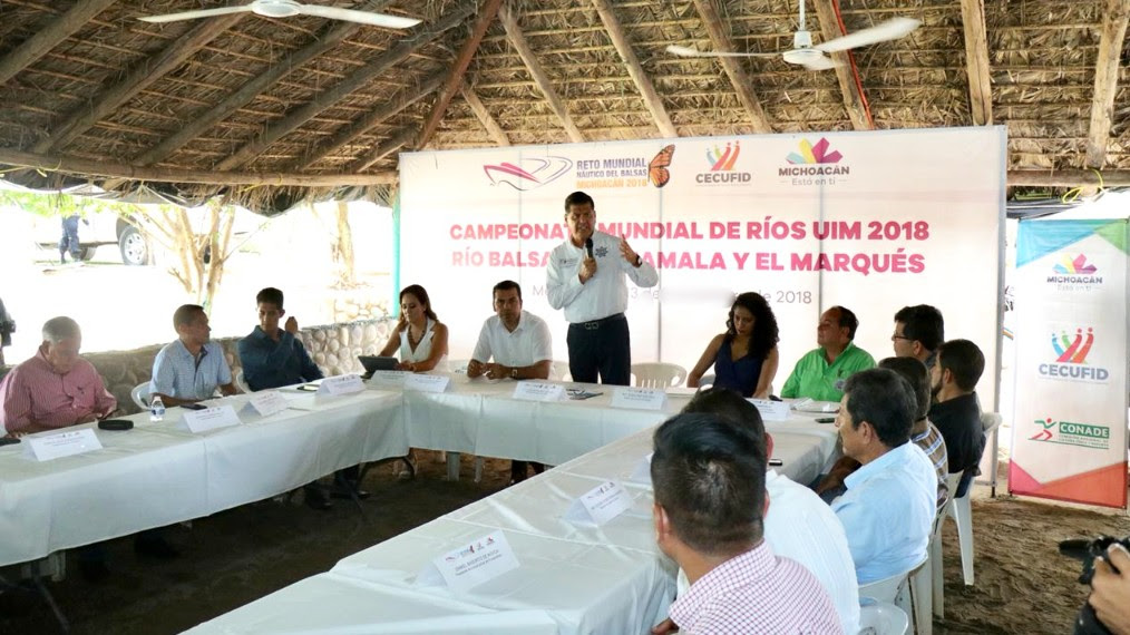 Huetamo, Michoacán, a 20 de septiembre de 2018.- El Gobierno del Estado, a través de la Secretaría de Seguridad Pública (SSP), en coordinación con la Comisión Estatal de Cultura Física y Deporte (Cecufid), presentó el “Campeonato Mundial de Ríos UIM 2018″, en un encuentro que sostuvieron autoridades de las entidades de Michoacán y Guerrero, con integrantes de la Federación Mexicana de Motonáutica.