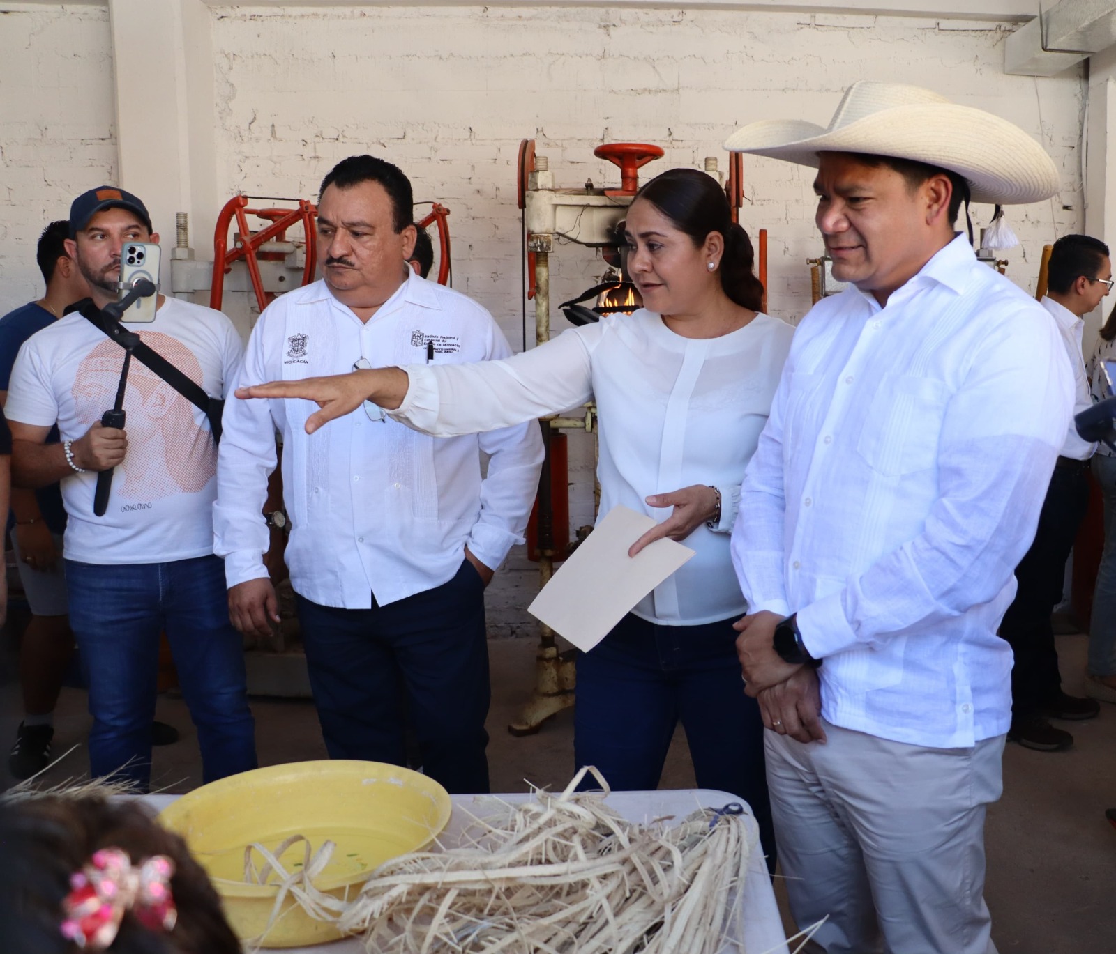 Huetamo, Michoacán, 16 de enero de 2024.- El Secretariado Ejecutivo del Sistema Estatal de Seguridad Pública (SESESP) inauguró en Huetamo los trabajos de mejoramiento y actualización del Taller Artesanal de Sombreros de Purechucho de la Red de Mujeres Constructoras de Paz (Mucpaz), con la finalidad de fortalecer los factores de protección entre las michoacanas para reducir las causas que limitan su derecho a una vida libre de violencia y fortalecer su economía.