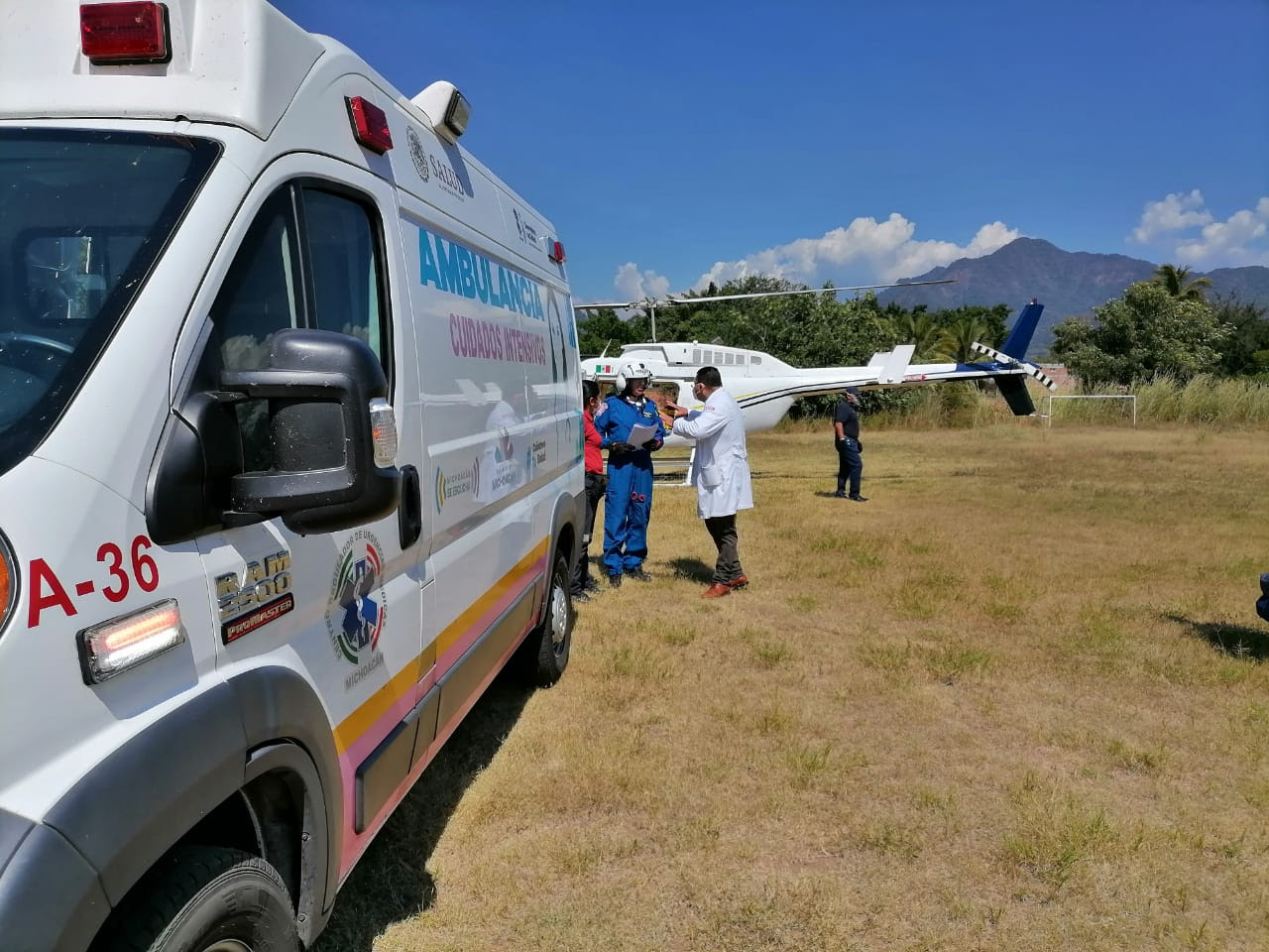 Debido a su gravedad requería transfusión sanguínea e intervención quirúrgica urgente, por lo que personal del CRUM, realizó el traslado en ambulancia aérea de la Dirección de Servicios Aéreos del Gobierno del Estado a Morelia.