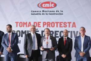 Participaron también el presidente entrante del Comité Directivo estatal del CMIC, Alejandro Vargas Acosta; el presidente saliente de la CMIC, Antonio Tinoco Zamudio; entre otros representantes de las cámaras de la industria mexicana.