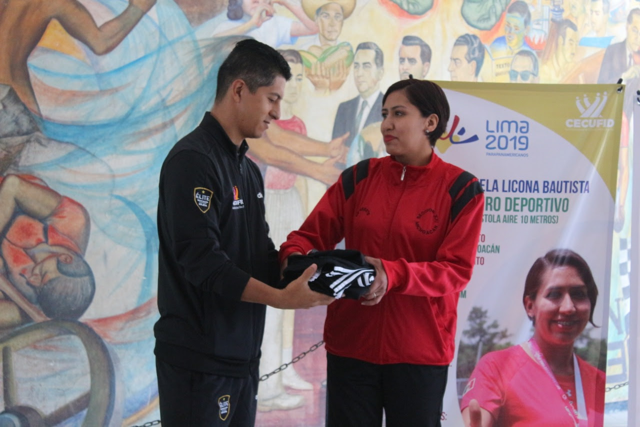Al igual que lo hizo con los deportistas convencionales que participaron en los Juegos Panamericanos, ahora Jorge Abdiel Díaz Acevedo, director general de la Cecufid, hizo entrega de los apoyos, a nombre del Gobierno de Michoacán, a Dulce Gabriela y a Ángel Ibarra.
