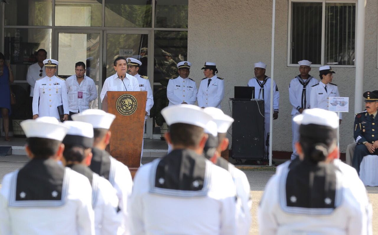 En su oportunidad, el comandante de la Décima Zona Naval, vicealmirante Salvador Gómez Rangel, leyó el discurso con motivo del CI aniversario de la Nacionalización de la Marina Armada de México, fecha en que se exalta la valentía, el profesionalismo que día con día demuestran las mujeres y hombres de mar, además de recordar el valor sustantivo de los mares.