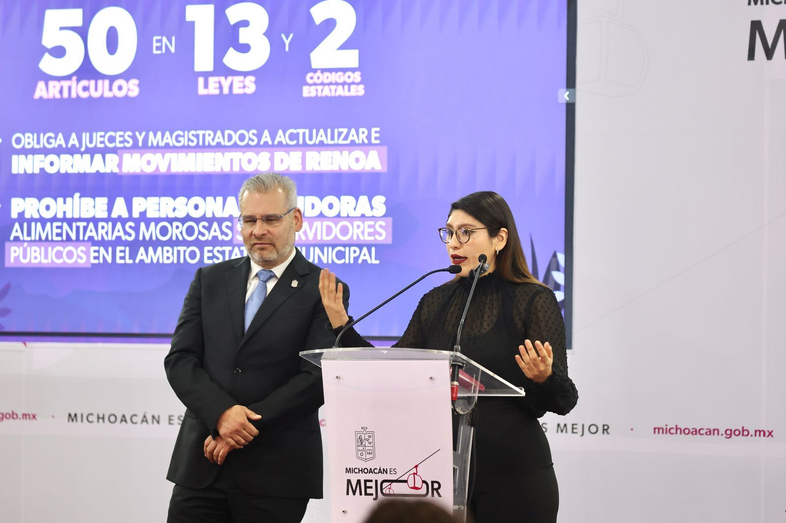 Explicó que el paquete de reformas implica modificaciones en 50 artículos de 13 leyes y dos códigos estatales, para que jueces y magistrados reporten los movimientos en el Registro Nacional de Obligaciones Alimentarias y aumentar las sanciones por incumplimiento para quedar de tres a cinco años de prisión y multas de 100 y 400 días de salario.