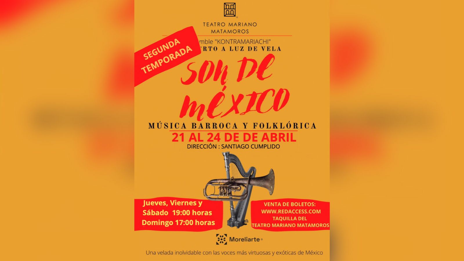 Morelia, Michoacán, a 17 de abril de 2022.- Debido al éxito de Son de México by Kontramariachi, el Teatro Mariano Matamoros presenta del 21 al 24 de abril la segunda temporada.