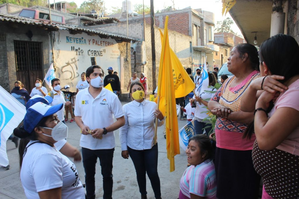 Cuitzeo, Michoacán a 21 de abril del 2021.- En su segundo día de campaña, el candidato a presidente municipal de Cuitzeo, Alejandro Ochoa Figueroa, se reunió en la comunidad de Mariano Escobedo, donde en su recorrido rumbo a la plaza principal él y su planilla pudieron conversar con los residentes.