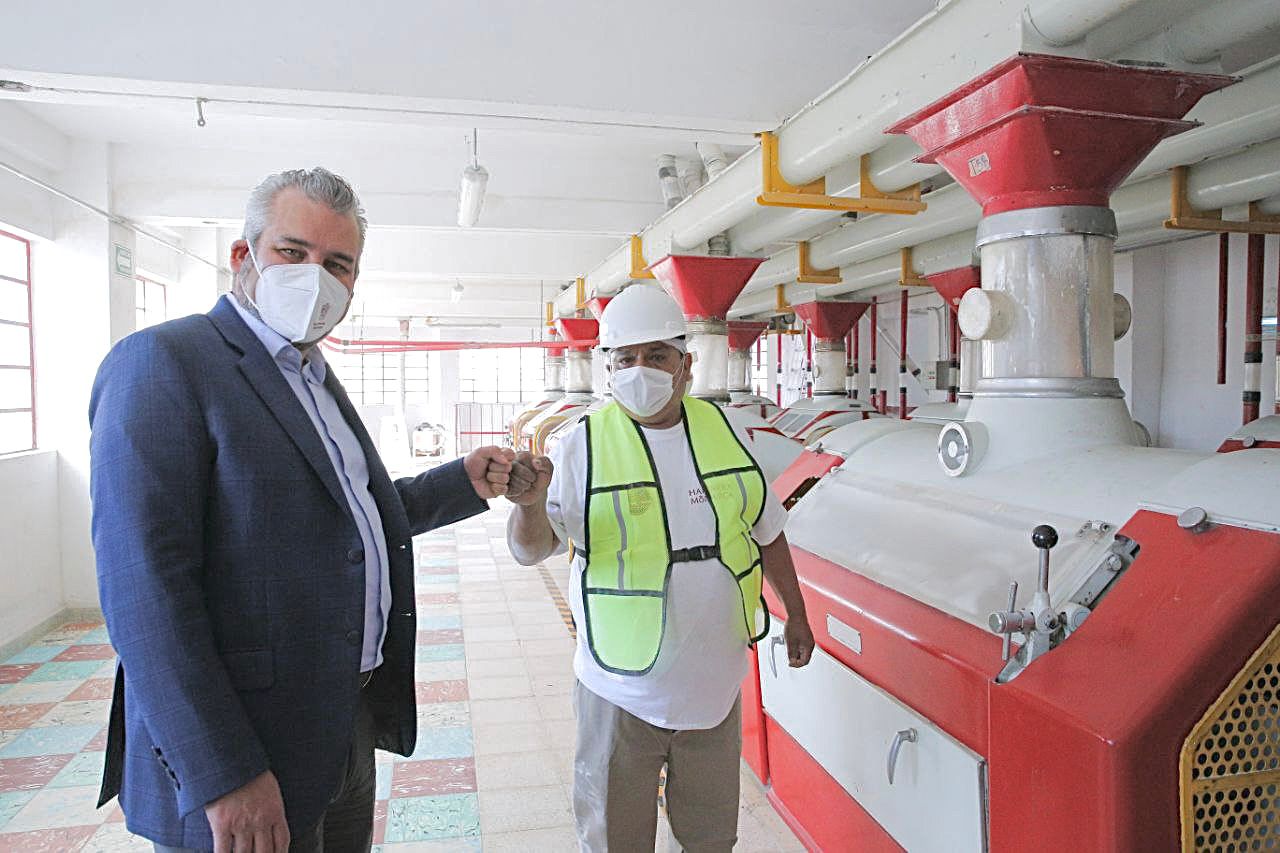 En un recorrido, el gobernador conoció el funcionamiento de la empresa a fin de analizar las oportunidades que hay, tanto para impulsar la inversión para la reactivación total de la empresa, como para activar al sector triguero del estado.