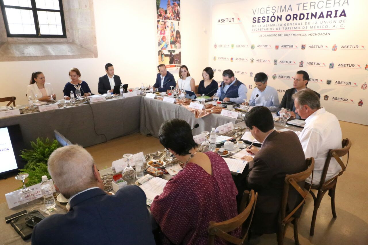 Morelia, Michoacán, a 27 de agosto de 2017.- La Asamblea General de la Reunión de Secretarios de Turismo de México A.C. (ASETUR) llevó a cabo en la capital michoacana su vigésima tercera Sesión Ordinaria, en la que se revisan temas trascendentales para el sector turístico del país.