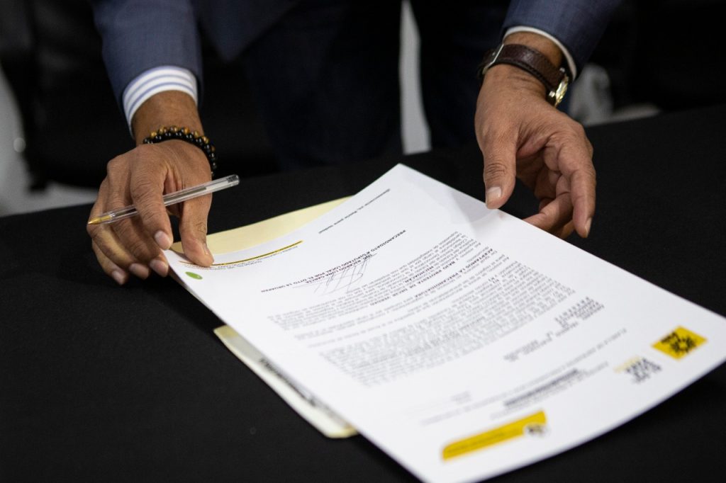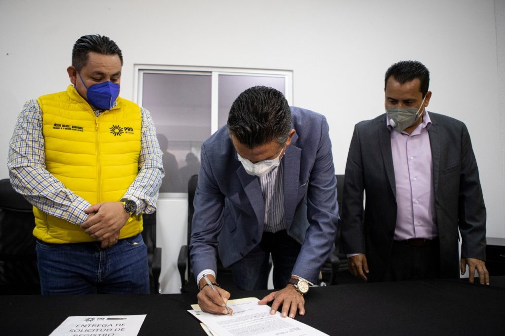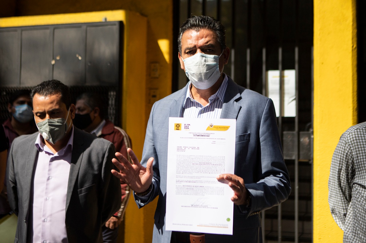 Luna García presentó su registro este domingo en el Comité Ejecutivo Estatal del Partido de la Revolución Democrática, PRD, acompañado por familiares y amigos en cumplimiento a las medidas sanitarias por el Covid-19.