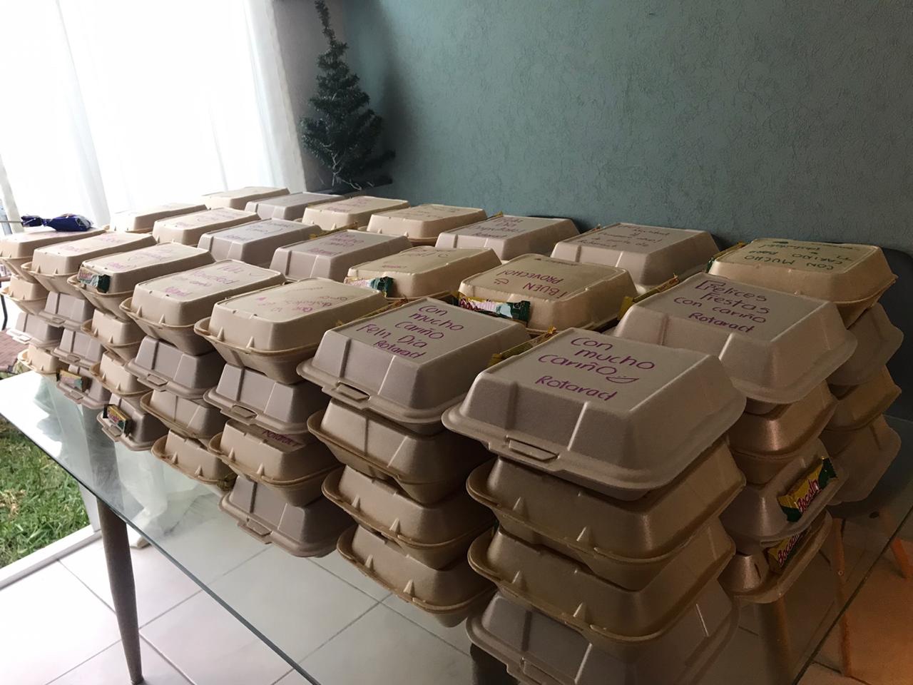 Socios del Club Rotaract Morelia Camelinas, se dieron cita desde el medio día para preparar cenas navideñas, mismas que repartieron en diversos puntos de la capital michoacana; La actividad se realiza cada año y en esta ocasión se llevó a cabo cuidando todo los lineamientos de higiene para prevenir la propagación del Covid-19.
