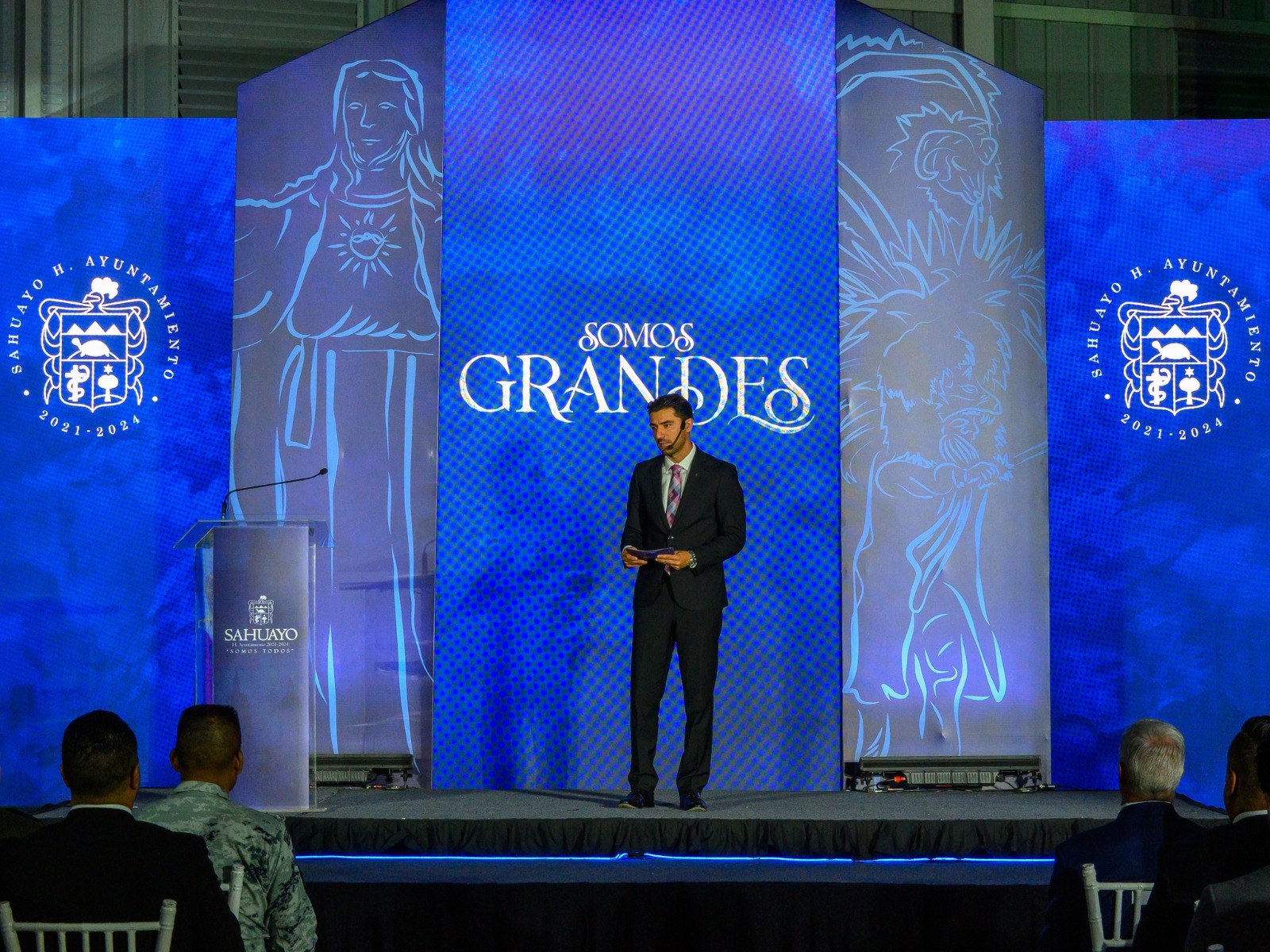 Sahuayo, Michoacán, a 17 de agosto de 2023.— Manuel Gálvez Sánchez, Alcalde de Sahuayo, compartió ante cientos de ciudadanos en el centro de exposiciones del recinto ferial, los logros alcanzados durante los dos años de gestión del H. Ayuntamiento 2021-2024. La presentación de los resultados fue guiada por el Secretario del Ayuntamiento, Mtro. José Roberto López Buenrostro, quien inició la sesión con la verificación de la asistencia de autoridades municipales.