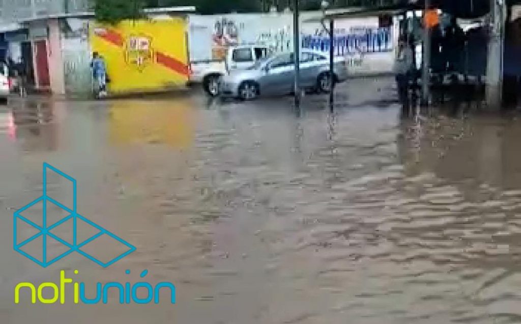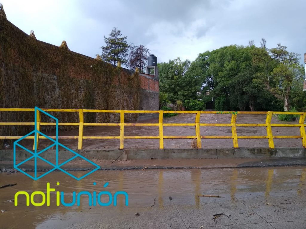 Al momento el río se alcanza a apreciar lleno en su totalidad, al grado de desbordarse y continuar con el flujo de agua por la avenida principal del pueblo, logrando entrar el agua a domicilios particulares, negocios cercanos, así como a las parcelas.