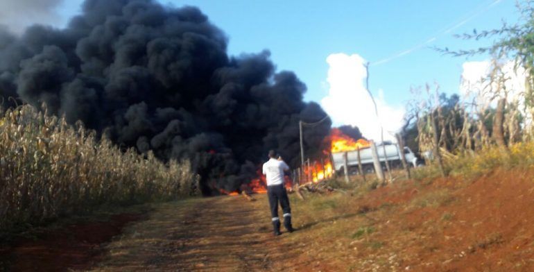 Se incendia una pipa con 30 mil litros de gasolina de dudosa procedencia, la tarde de este sábado en una comunidad de Acuitzio del Canje.