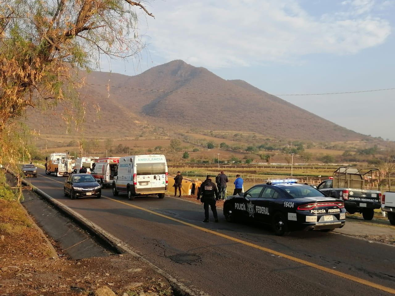 Derivado de la volcadura de un autobús de trabajadores de la congeladora Opus Farm, de Zamora, suscitada en Tangamandapio, a la altura de Chavinda, se desplegaron 10 ambulancias de diversas corporaciones de auxilio y policía Michoacán, para realizar el traslado de los lesionados a diversos hospitales cuatro al IMSS, 18 al San José de Zamora y los otros nueve se trasladaron por sus medios.