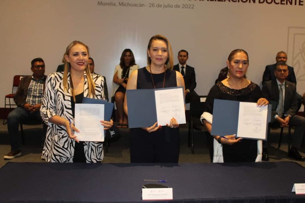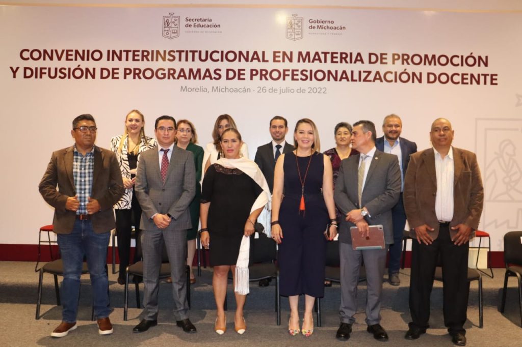 Morelia, Michoacán, 27 de julio del 2022.- Con la proyección de beneficiar a más de 5 mil maestras y maestros en un año, la Secretaría de Educación del Estado (SEE) firmó el Convenio Interinstitucional en Materia de Promoción y Difusión de Programas de Profesionalización Docente, con 10 universidades y normales.