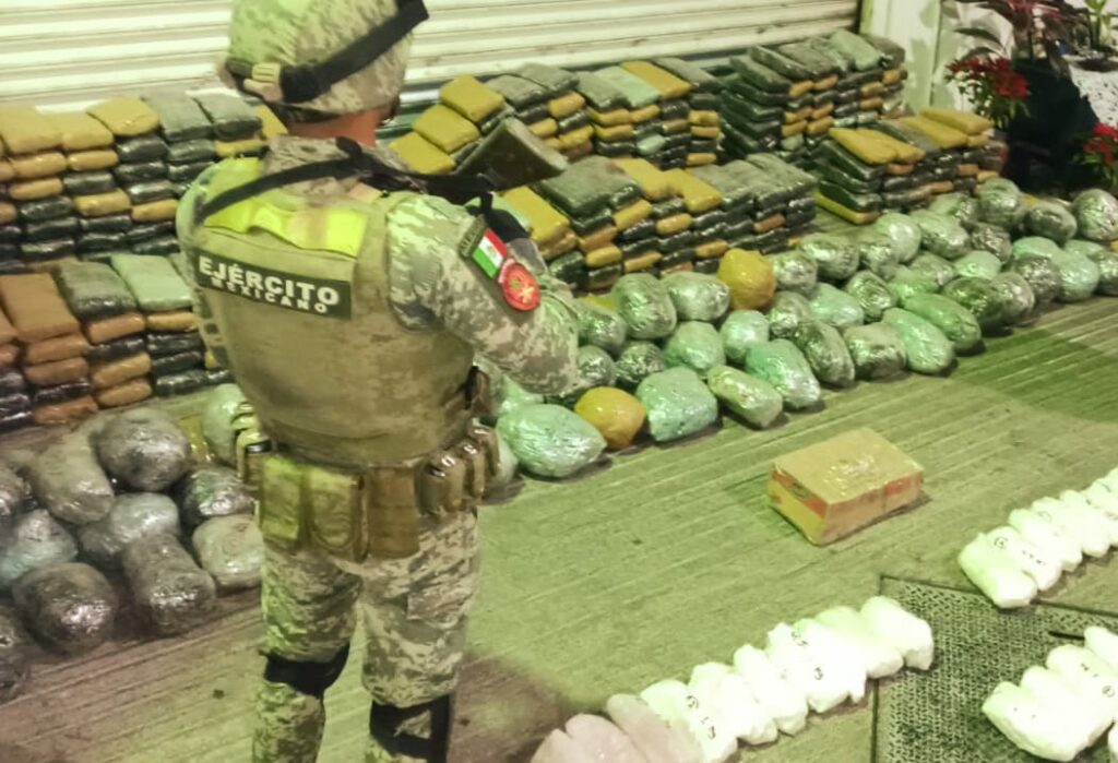 ZINAPECUARO MICH., 19 de enero. – Personal del Ejército Mexicano aseguró en el municipio de Zinapécuaro un importante cargamento de 24 kilogramos de cristal, los cuales se encontraban empaquetados en bolsas de plástico.