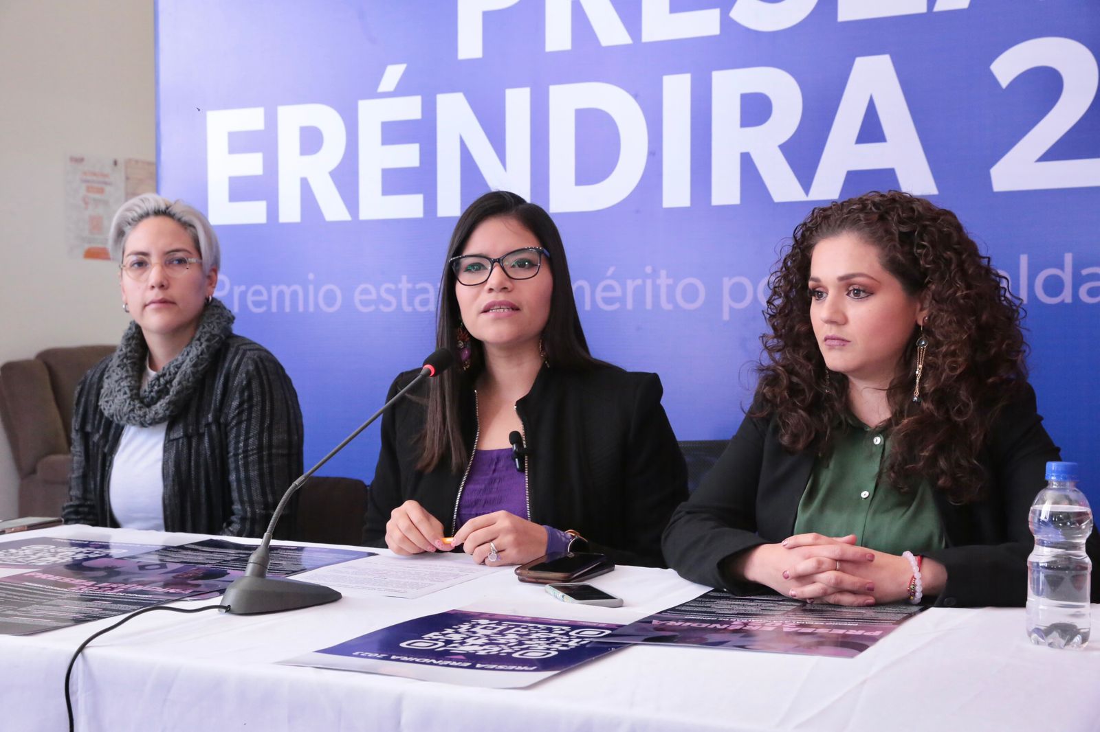 Morelia, Michoacán, 14 de febrero de 2023.- La Secretaría de Igualdad Sustantiva y Desarrollo de las Mujeres Michoacanas (Seimujer), dio a conocer una convocatoria para la entrega de la Presea Eréndira 2023, este premio se otorga a personas, asociaciones e instituciones que sobresalgan por acciones sobresalientes o compromiso social con el objetivo de hacer el bien, la difusión por la igualdad y lucha contra la discriminación así como la violencia hacia las mujeres.