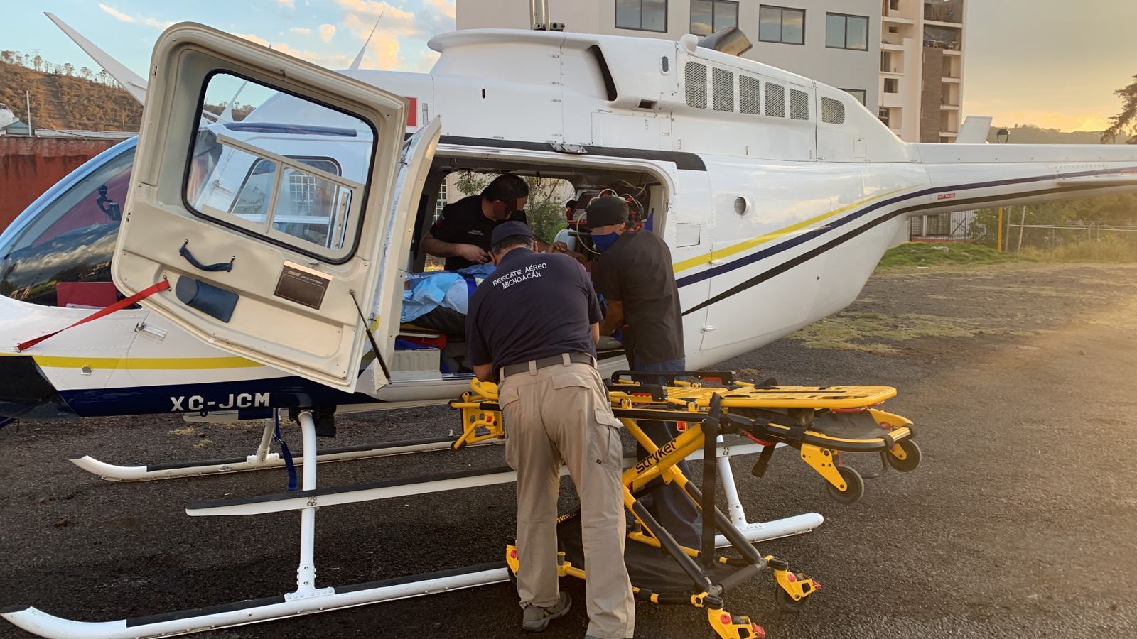 Ante ello, de manera inmediata se trasladó la unidad al sitio en mención, donde los paramédicos de vuelo dieron asistencia médica a la madre durante el trayecto, para momentos más tarde aterrizar en el Hospital de la Mujer en Morelia donde la paciente recibirá los cuidados médicos especializados.