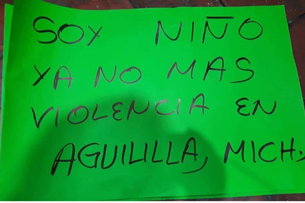 Aguililla, Michoacán a 13 de abril del 2021.- Mientras el actual gobernador de Michoacán, Silvano Aureoles arribaba al municipio de Aguililla, a fin de lograr la paz en el municipio debido a la ola de violencia que se vive actualmente. Habitantes del lugar recibieron al mandatario con carteles que contenían peticiones de seguridad.