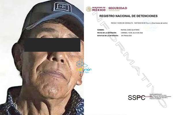 Esta tarde, La Secretaría de Marina a través de la Armada de México informó que hoy, en un operativo realizado por la Fiscalía General de la República (FGR) en coordinación con personal naval, se logró la detención de un presunto transgresor de la ley de nombre Rafael Caro Quintero, en el estado de Sinaloa, señalado como un objetivo prioritario para el Gobierno de México y de los Estados Unidos de América.