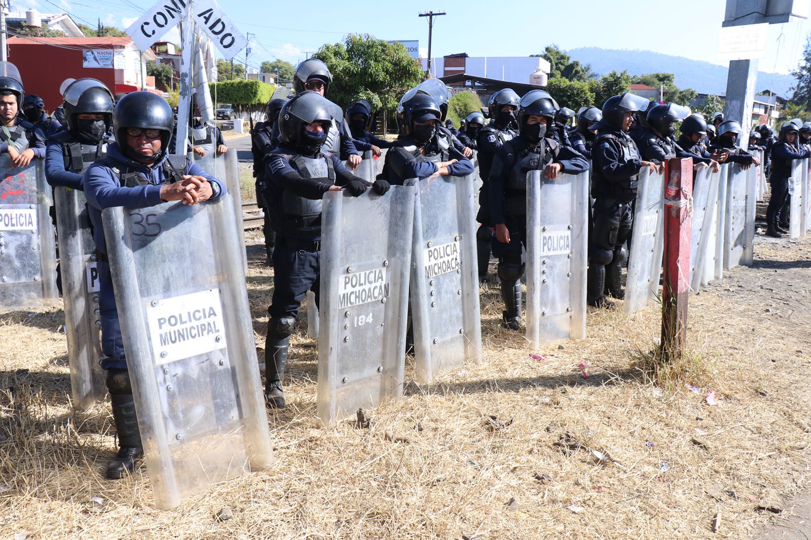 Desde temprana hora, los elementos de la Policía Michoacán fortalecieron las tareas enfocadas a preservar el orden en esta demarcación; asimismo, se realizaron recorridos de reconocimiento pie tierra y vía aérea mediante drones principalmente en las localidades de Caltzontzin y La Cofradía, donde anteriormente los manifestantes han sido frustrados en diversos intentos por bloquear la vialidad.