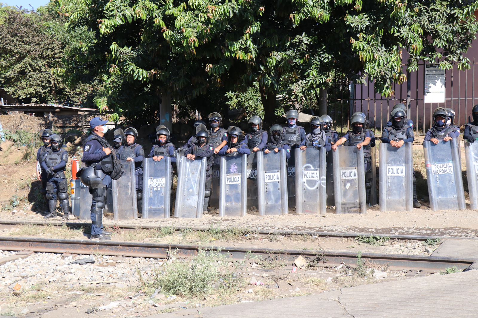 Uruapan, Michoacán, 9 de febrero del 2022.- Con el objetivo de garantizar el paso libre del tren en este municipio, la Secretaria de Seguridad Pública (SSP), continúa con las tareas para inhibir cualquier conducta que ponga en riesgo el libre tránsito en las vías ferroviarias.